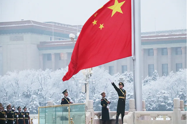 國旗伴著雄壯的《義勇軍進(jìn)行曲》冉冉升起